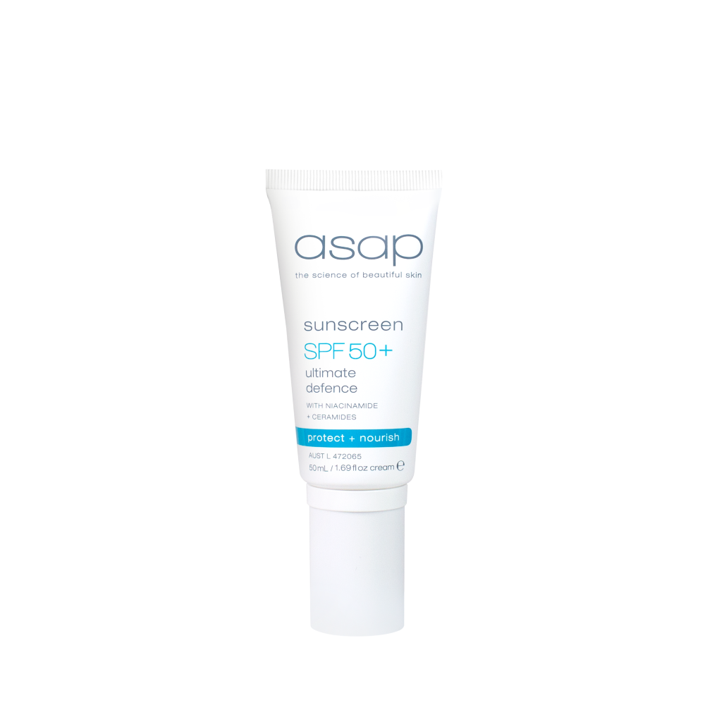 De ASAP Ultimate Defence SPF 50+ is meer dan alleen een zonnebrand: het is een dagelijkse huidverzorging die bescherming combineert met actieve huidverbetering. Deze geavanceerde formule biedt zeer hoge UVA- en UVB-bescherming, terwijl krachtige ingrediënten zoals niacinamide, ceramiden en hyaluronzuur je huid versterken, hydrateren en in balans houden.