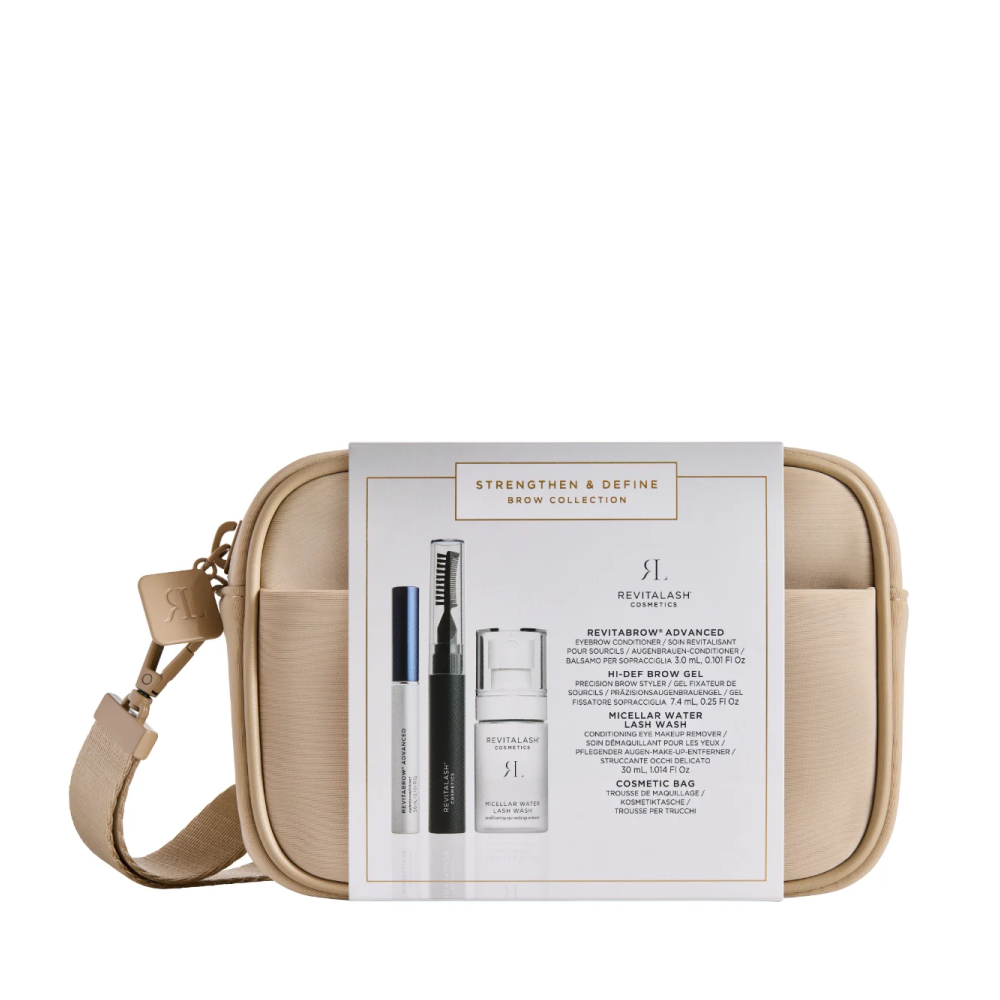 Deze limited edition RevitaBrow® Strengthen & Define Brow Collection combineert wenkbrauwverzorging, styling en reiniging in één complete set, verpakt in een luxe beige travel bag. Ideaal voor wie vollere, sterkere en strak gedefinieerde wenkbrauwen wilt.